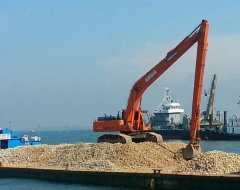 520 슈퍼롱붐 22M 피복석 쌓기