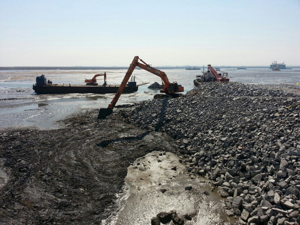 슈퍼롱붐 평택항 서부두 융기토 제거 작업